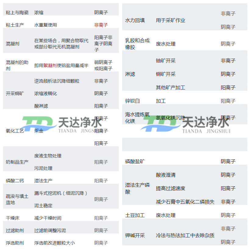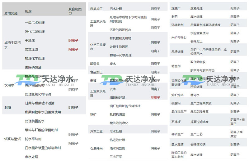 之前的文章中寫過各行業(yè)常用的聚丙烯酰胺型號,只寫了部分的行業(yè),有看了文章之后朋友給我們留言說,可不可在詳細(xì)點(diǎn),當(dāng)然可以,天達(dá)凈水材料廠作為聚丙烯酰胺生產(chǎn)廠家,我們的宗旨就是服務(wù)好每一位客戶。昨天晚上加班整理內(nèi)容,制作成了圖片形式,如下:
